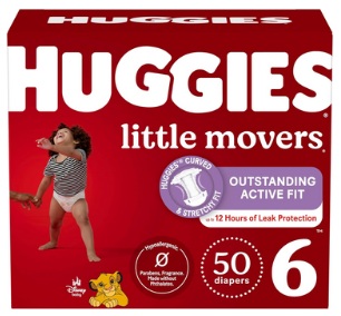 Amazon has the Huggies Size 6 Diapers, Little Movers Baby Diapers, Size 6 (35+ lbs), 50 Count (2 packs of 25), Packaging May Vary marked down to $12.13, use “Subscribe & Save” to get free shipping and bring the price down to only $11.52. Plus clip the 25% off coupon making it only $8.49