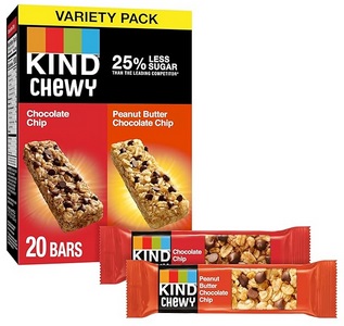 - One 20-count KIND Chewy granola bars variety pack of gluten free bars