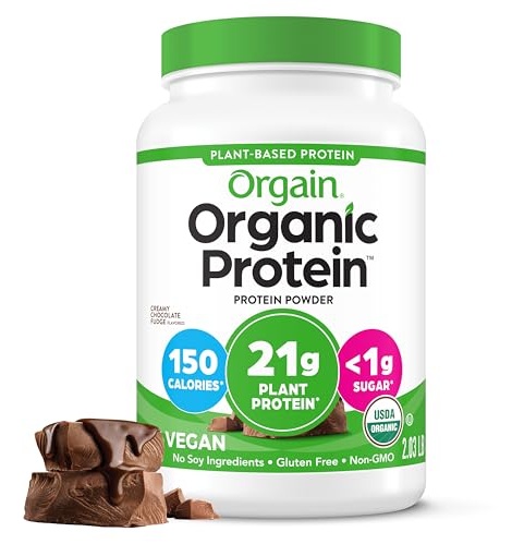 Orgain Organic Vegan Protein Powder, Creamy Chocolate Fudge – 21g Plant Protein, 6g Prebiotic Fiber, Low Net Carb, No Lactose Ingredients, No Added Sugar, Non-GMO, For Shakes & Smoothies, 2.03 lb