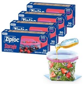 Ziploc Gallon Food Storage Bags, 120ct Total, Stand-Up Bottom, Easy to Fill, 30 Count (Pack of 4) Only $9.05 – $10.56 + Free Shipping With Subscribe & Save From Amazon!