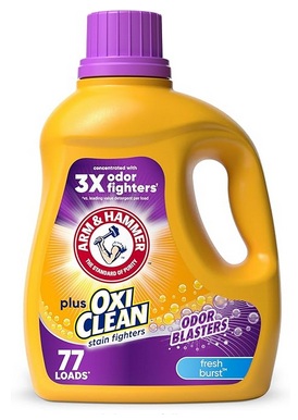 One 100.5 fl oz bottle of ARM & HAMMER Plus OxiClean with Odor Blasters Laundry Detergent, Fresh Burst Liquid Laundry Detergent cleans 77 medium loads when used as directedTriple-power HE laundry detergent fights tough odors, blasts away stains and boosts freshness so your clothes look and smell their bestWith trusted ARM & HAMMER Baking Soda plus an odor fighter, this HE laundry detergent is formulated to deeply clean clothes and deliver lasting freshnessLaundry stain remover forces out stubborn stains and nasty odors using OxiClean Stain Fighters to remove stains like food, grass, grease and moreOdor Blasters fights tough smells like body odor, sweat and musty towels and leave clothes with a lasting Fresh Burst scentClean Deep, Don’t Spend DeepARM & HAMMER Baking Soda has been the standard of purity and a trusted household staple in millions of cabinets and pantries for generations of families