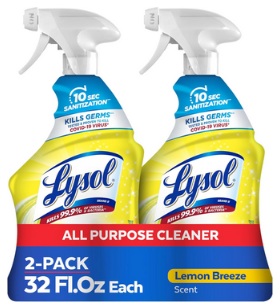 Amazon has the Lysol All Purpose Cleaner Spray, Multi-Purpose Disinfecting Spray, Kitchen & Bathroom Cleaner, Lemon Breeze Scent, 32 Fl Oz (Pack of 2) marked down to $6.97 use “Subscribe & Save” to save 5% to bring the price down to just $6.62 + free shipping. Plus clip the 30% off coupon that is on the product page to bring to bring the priced won to only $4.53!