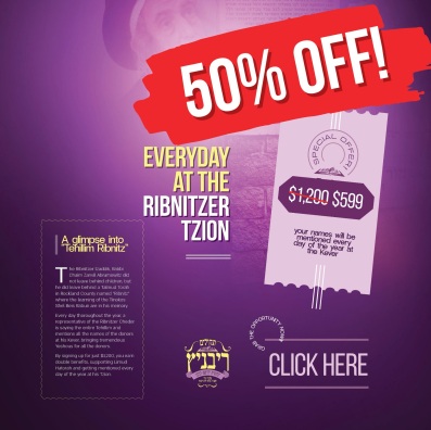 TODAY IS THE YURTZEIT!! Don’t miss this special opportunityEveryday At The RIBNITZER Tzion!! For Just $599 (50% OFF) !!!!