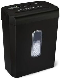 - EFFICIENT SHREDDING: 6-sheet capacity handles 20-pound bond paper, including staples and paper clips; shreds non-metal credit cards one at a time