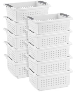 Sterilite 10-Pack Medium Stacking Basket, Open Top Plastic Storage Organizer, White – Stackable Crate Containers for Countertop, Cabinet, Pantry Shelf, Laundry Room, Bathroom & Home Office Only $27.40 (was $40.99)