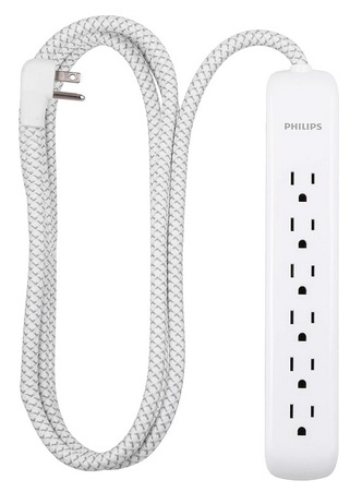 Philips 6 Outlet Power Strip Surge Protector, 6 Ft Power Cord, Designer Braided Extension Cord, Flat Plug, Perfect for Office or Home Décor, 1080 Joules, White, SPC3054WA/37 Only $3.99 (was $12.79)!!