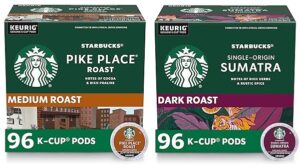 - PREMIUM COFFEE IN KEURIG K-CUPS—Starbucks delivers exceptional coffee cup after cup with Pike Place Roast medium roast coffee K-Cups—96 total coffee pods for Keurig coffee makers