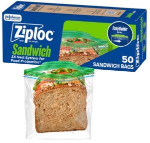 Ziploc Sandwich and Snack Bags with EasyGuide Texture, Plastic Storage Bags with Grip ‘n Seal Technology, 50 Bags Total (Packaging May Vary) Only $1.57 – $1.76 + Free Shipping With Subscribe & Save From Amazon!