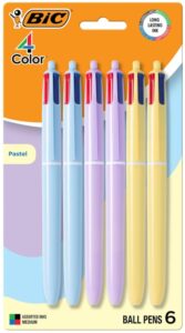 - WHAT’S INCLUDED: Pack of six (6) BIC 4-Color Pastel Ballpoint Pens with Black, Blue, Red, and Green Ink