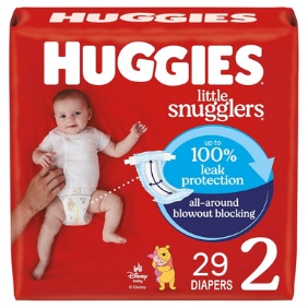 Huggies Size 2 Diapers: 29 Little Snugglers Baby Diapers, size 2 (12-18 lbs), packaging may varyFront and back blowout blocker*: Little Snugglers infant diapers are made with a front and back blowout blocker* for all around protection (*sizes 1 & 2 only)Huggies Little Snugglers has 28% fewer blowouts** (** BM Leakage Size 1 versus leading store brand)Up to 100% Blowout & Leak Protection: Our baby diapers are designed with Huggies Leak Lock System that offers up to 12 hours of leak protectionGentle Skin Protection: These Huggies infant diapers provide gentle skin protection for your babyNo Harsh Ingredients: Fragrance free Little Snugglers baby diapers are made without phthalates, parabens, lotions, elemental chlorine and natural rubber latexSafe for Sensitive Skin: Huggies baby diapers are hypoallergenic and safe for use on sensitive skinGentleAbsorb Liner: Each disposable diaper is made with Huggies’ GentleAbsorb Liner*** that absorbs wetness on contact to help keep your baby’s skin clean and healthy (***Available in Little Snugglers sizes Preemie-2)Wetness Indicator: Our infant diaper features a color-changing wetness indicator that lets you know when your baby’s diaper is ready to be changed