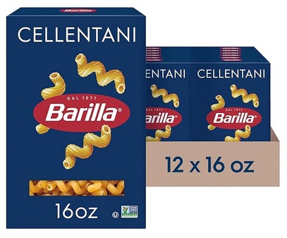 Barilla Cellentani Pasta, 16 oz. Box (Pack of 12) – Non-GMO, Made with Durum Wheat Semolina – Kosher Certified Only $8.36 – $9.35 + Free Shipping With Subscribe & Save From Amazon!
