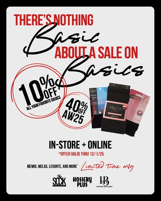 Hosiery Plus Black Friday Sale – 10% Off All Basics from MeMoi, Melas, Levante + 40% OFF AW25 Collection!