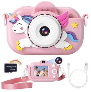 The Kids Camera Toys for Girls Age 3-8, Kids Digital Camera Toddler Camera for 3 4 5 6 7 8 Years Old Birthday Gifts, 1080P Video Cameras with Cute Protective Cover & 32GB SD Card is marked down to $18.99. Plus add coupon code: YMFHNZCM at checkout, to bring the total to just $9.49 on Amazon For Prime Members!