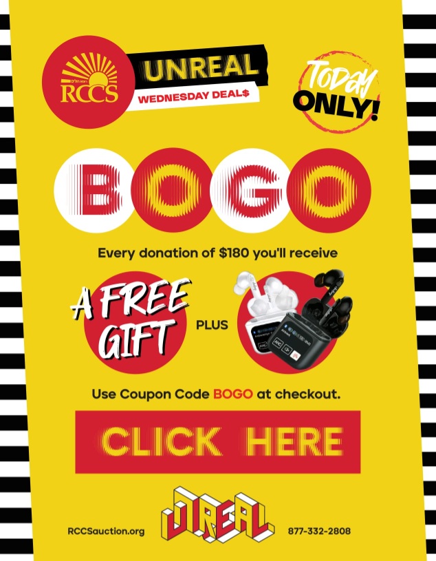 TODAY ONLY — BOGO! Donate $180 and get a FREE RCCS gift + a bonus gift of premium earbuds!