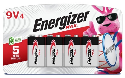 - 4 pack of Energizer MAX 9V Alkaline Batteries, 9 Volt Alkaline Batteries