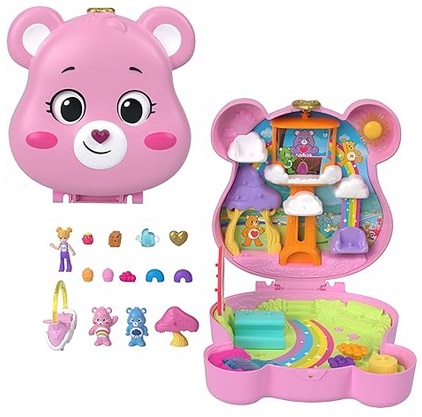 - Polly Pocket joins her Care Bears friends in this one-of-a-kind partnership compact with three micro dolls and themed accessories.