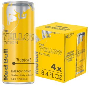 Red Bull Yellow Edition Energy Drink, Tropical, with 80mg Caffeine plus Taurine & B Vitamins, 8.4 Fl Oz, Pack of 4 Cans