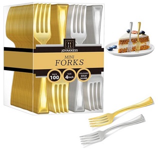 The 100 PCS Gold and Silver Mini Forks Heavy Duty, 4 inch Gold and Silver Plastic Fork, Mini Forks for Appetizers, Dessert Fork Disposable, BPA Free, Food Safe, Suitable for All Occasions is marked down to $4.99 on Amazon!