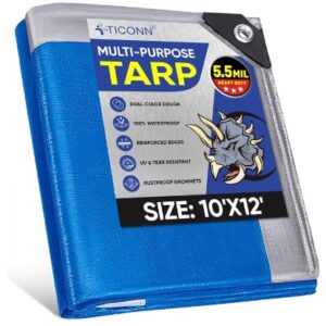 - [PREMIUM QUALITY MATERIAL] Crafted with top-quality materials, the TICONN plastic tarp is built to last. We offer 5.5, 10, and 16 mil thick water proof, UV resistant polyethylene fabric large tarp with size like tarps heavy duty waterproof 20×30, tarps heavy duty waterproof 8×10 and so on.