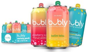 bubly Sparkling Water, 3 Flavor Variety Pack (Bellini, Strawberry Sunset, Coconut Pineapple), Zero Sugar & Zero Calories, 12 Fl Oz Cans (Pack of 18) Only $6.04 – $6.75 + Free Shipping With Subscribe & Save From Amazon (was $14.28)!
