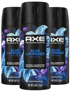 AXE Fine Fragrance Collection Premium Deodorant Body Spray for Men Blue Lavender 3 Count with 72H Odor Protection and Freshness Infused with Lavender, Mint, and Amber Essential Oils 4 oz Only $9.70 – $11.45 + Free Shipping With Subscribe & Save From Amazon (was $22.90)!