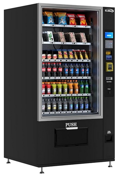 • Commercial Food Vending Machine – This refrigerated candy vending machine provides expanded versatility for storing and selling cold drinks, candy bars, chips, and other fresh, delicious snacks, making it great for entrepreneurs and businesses.